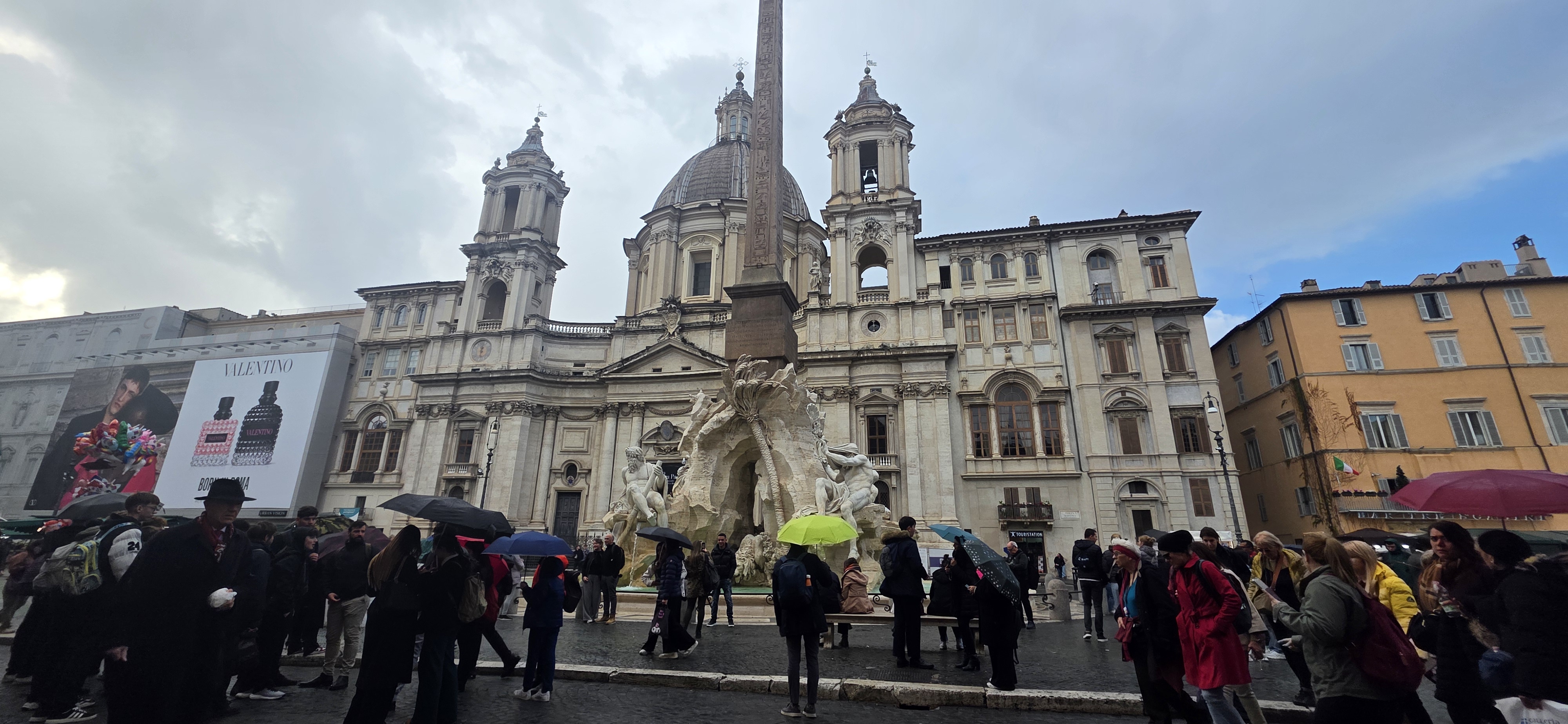 네 강의 분수 바로 뒤에 보이는 산타 아네제 인 아고네(Sant’Agnese in Agone)는