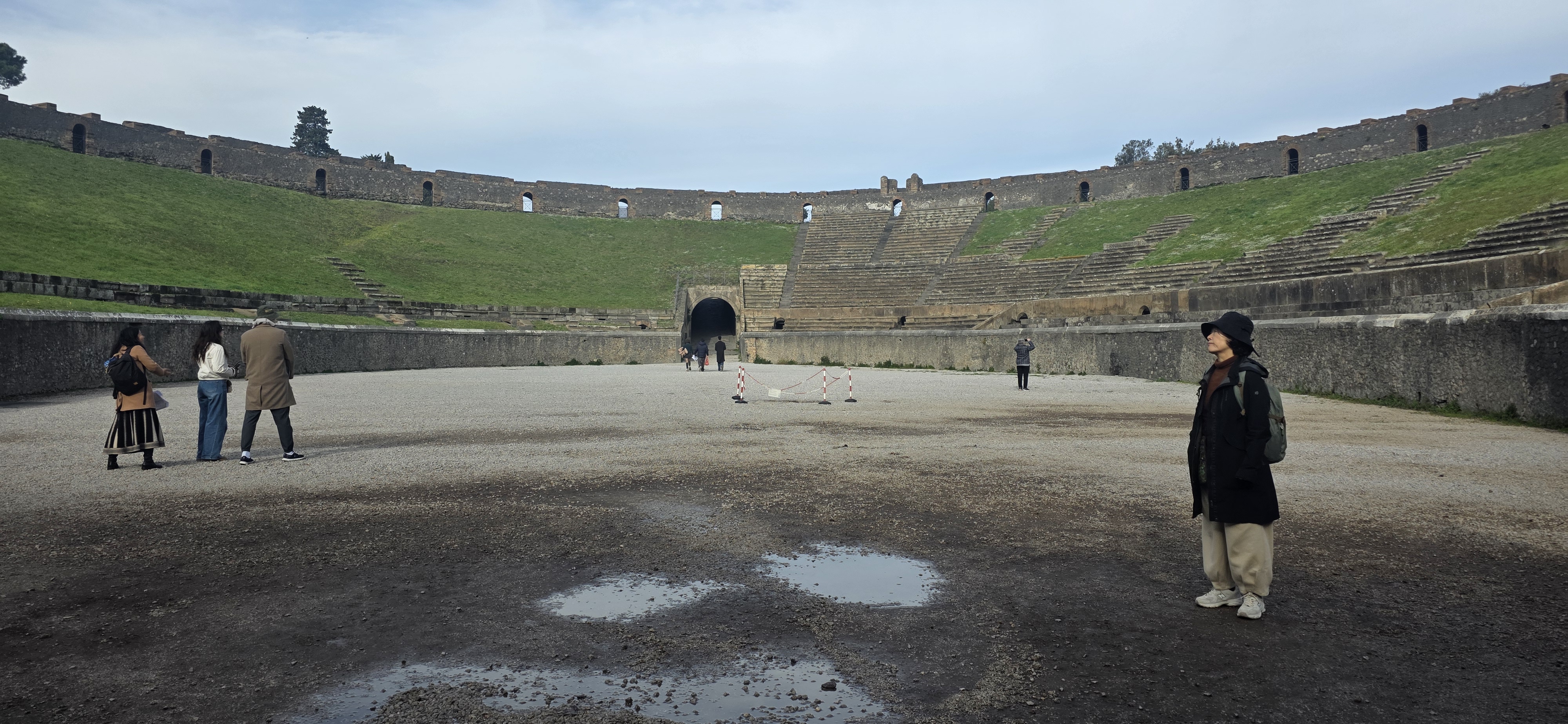 암피테아트로 옆에 있는 넓은 운동장 겸 교육 공간으로, 청년들이 운동·훈련을 하던 곳이란다.