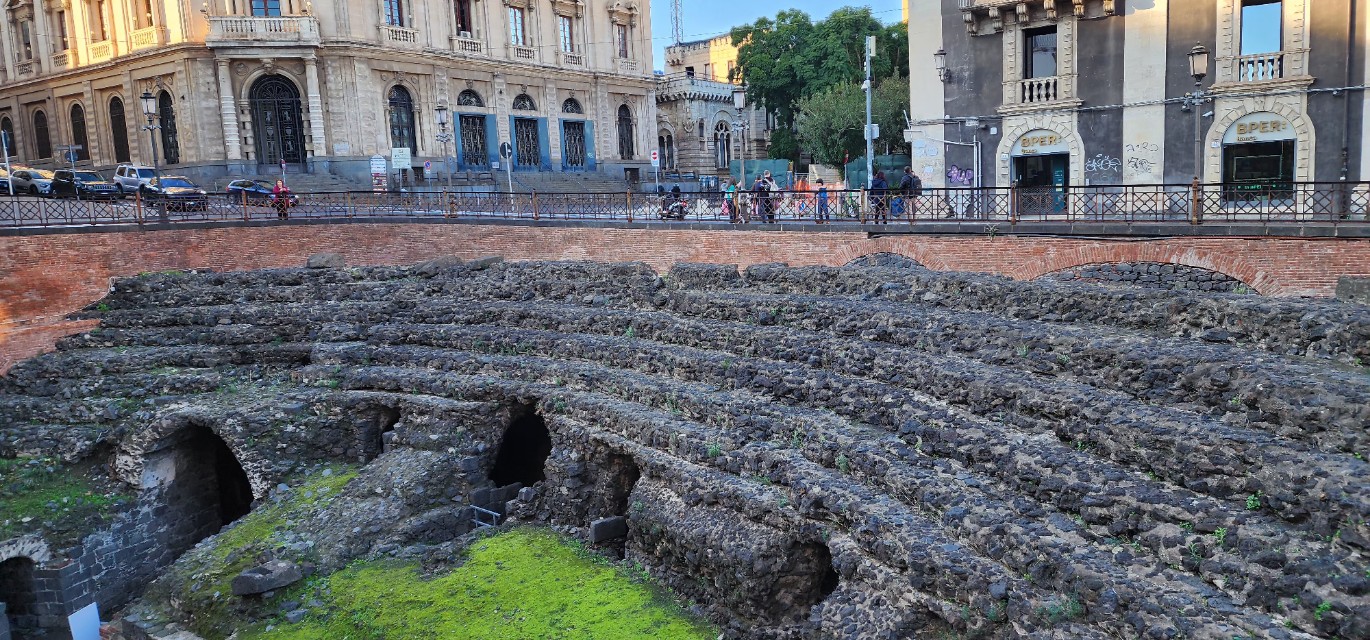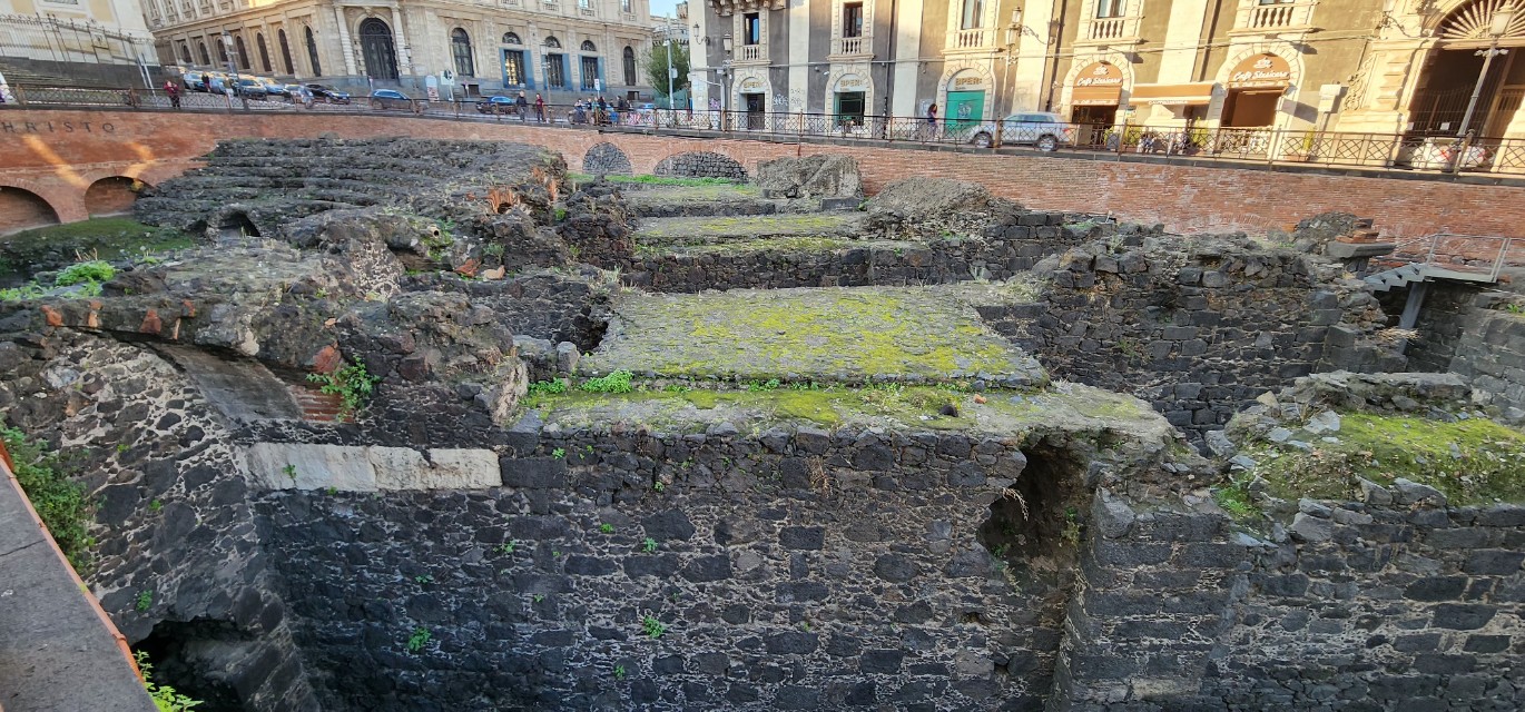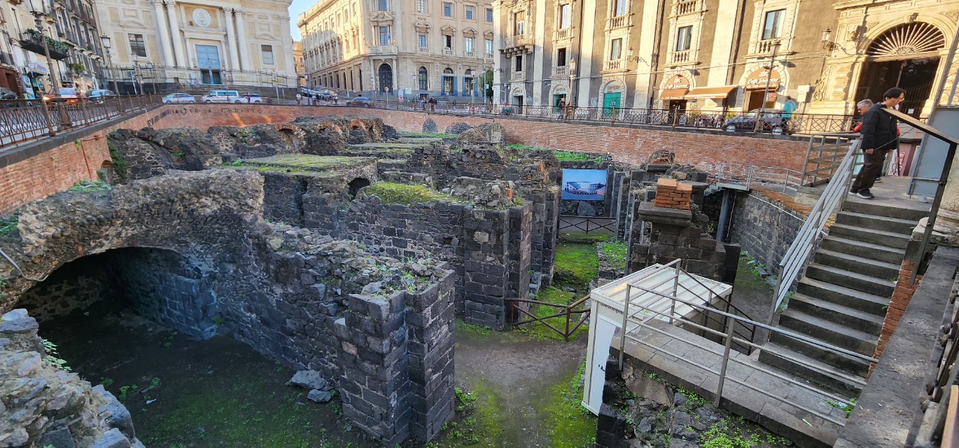 스테시코로 광장 주변의 로마 원형극장(Anfiteatro Romano)은 현재 일부만 남아 있지만, 카타니아가 고대부터 중요한 도시였음을 보여 주는 장소이다.