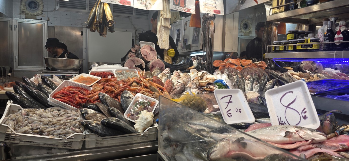 몵타의 신선한 해산물을 사기위해 장바구니를